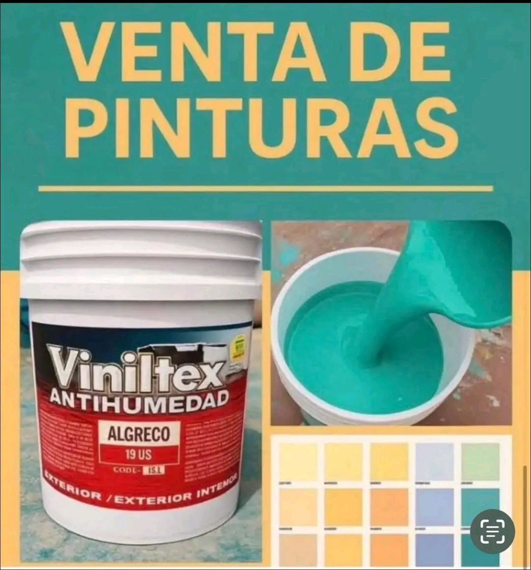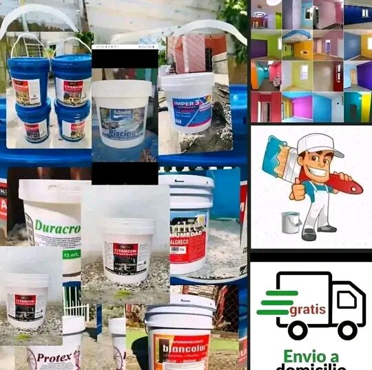 🎨_Vinil_ (Antihumedad ) Exterior e Interior 🖌️ 🎨_Impermeabilizante (Goteras y Filtraciones) _🖌️ 🎨_Piscina _🖌️ Disponibles en Cubetas de 10 ltr y 19 ltr varios 🌈 Colores 🎨_Aceite_🖌️ 🎨_Esmalte Sintético brillante_🖌️ 🎨_Mono Capa para Autos _🖌 🎨_Anticorrosivo _🖌 🎨_Diluyente Sintético _🖌 Disponibles en Galones de 4 ltr Mensajería _ ( gratis) 😀 También puedes Comprobar el producto antes de pagar sin ningún problema en los precios se incluye el transporte